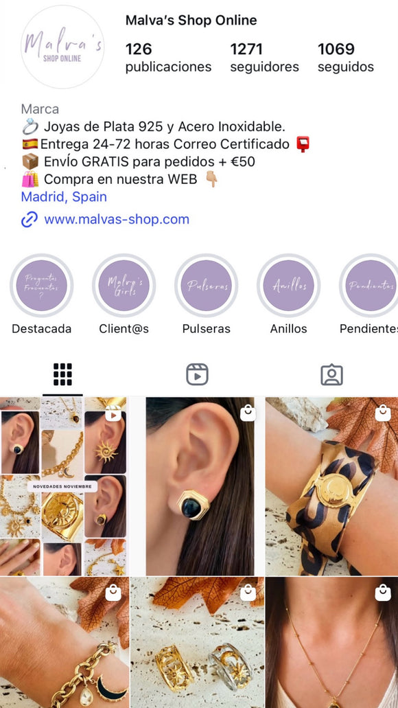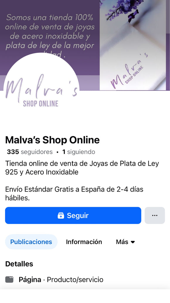 Estamos en Facebook Malva’s Shop Online (@malvas.shoponline), Instagram (@malvas.shop), Pinterest (malvasshop) y Whatsapp (+34912532921).