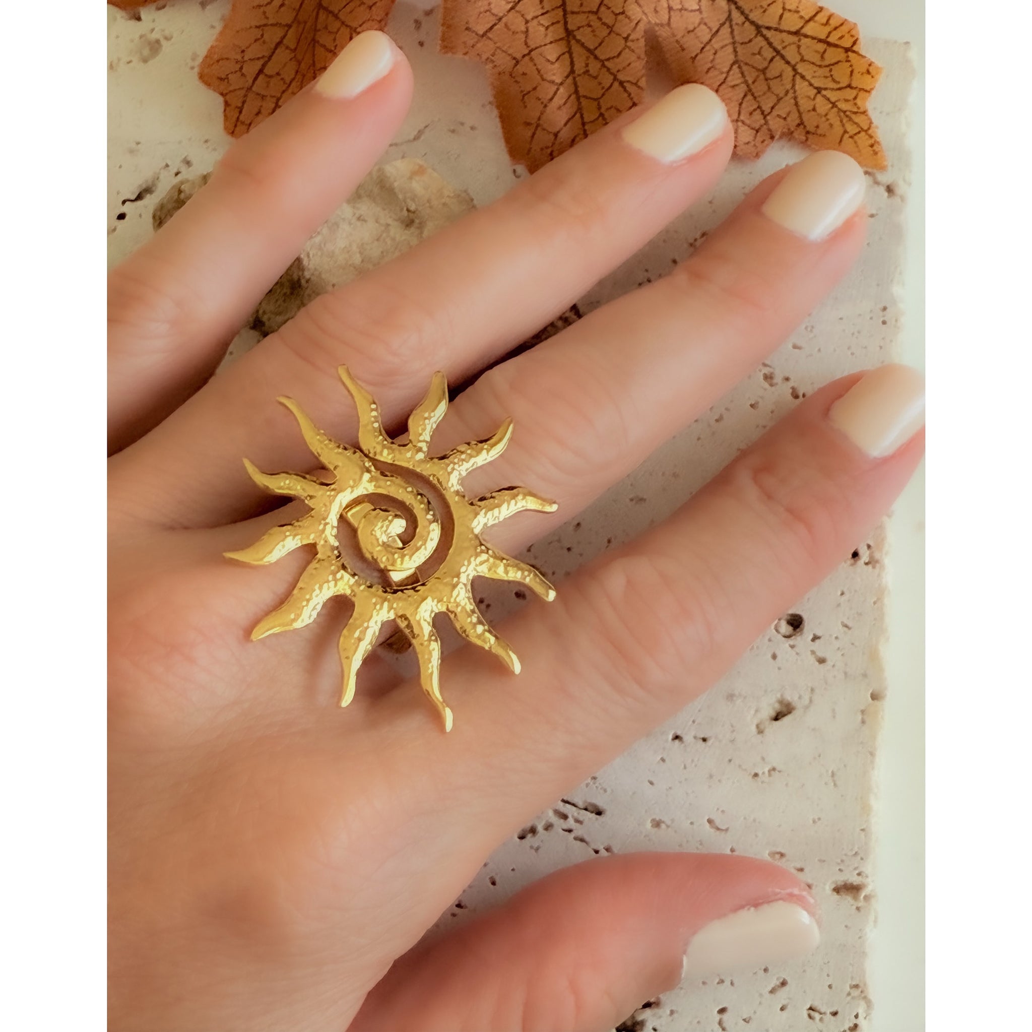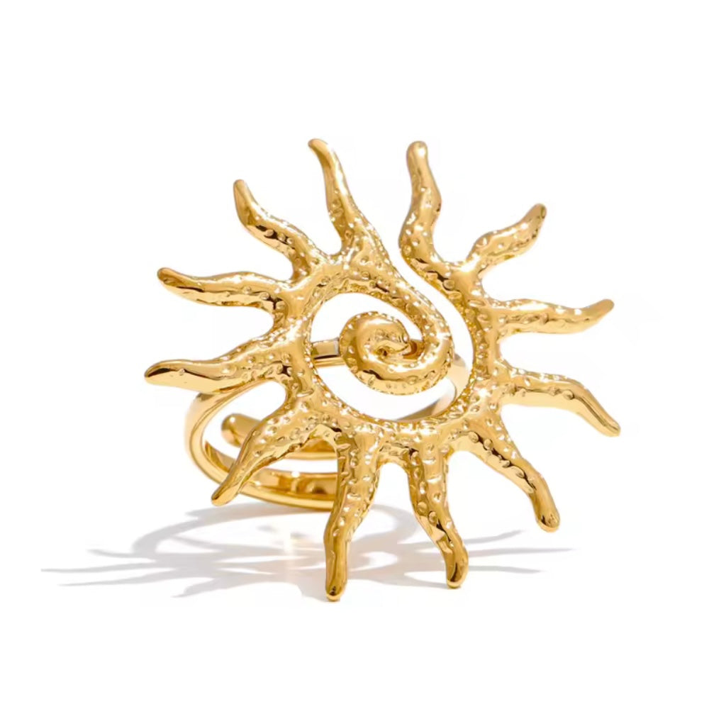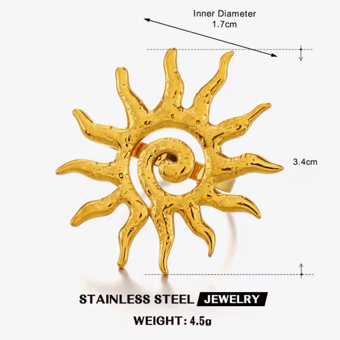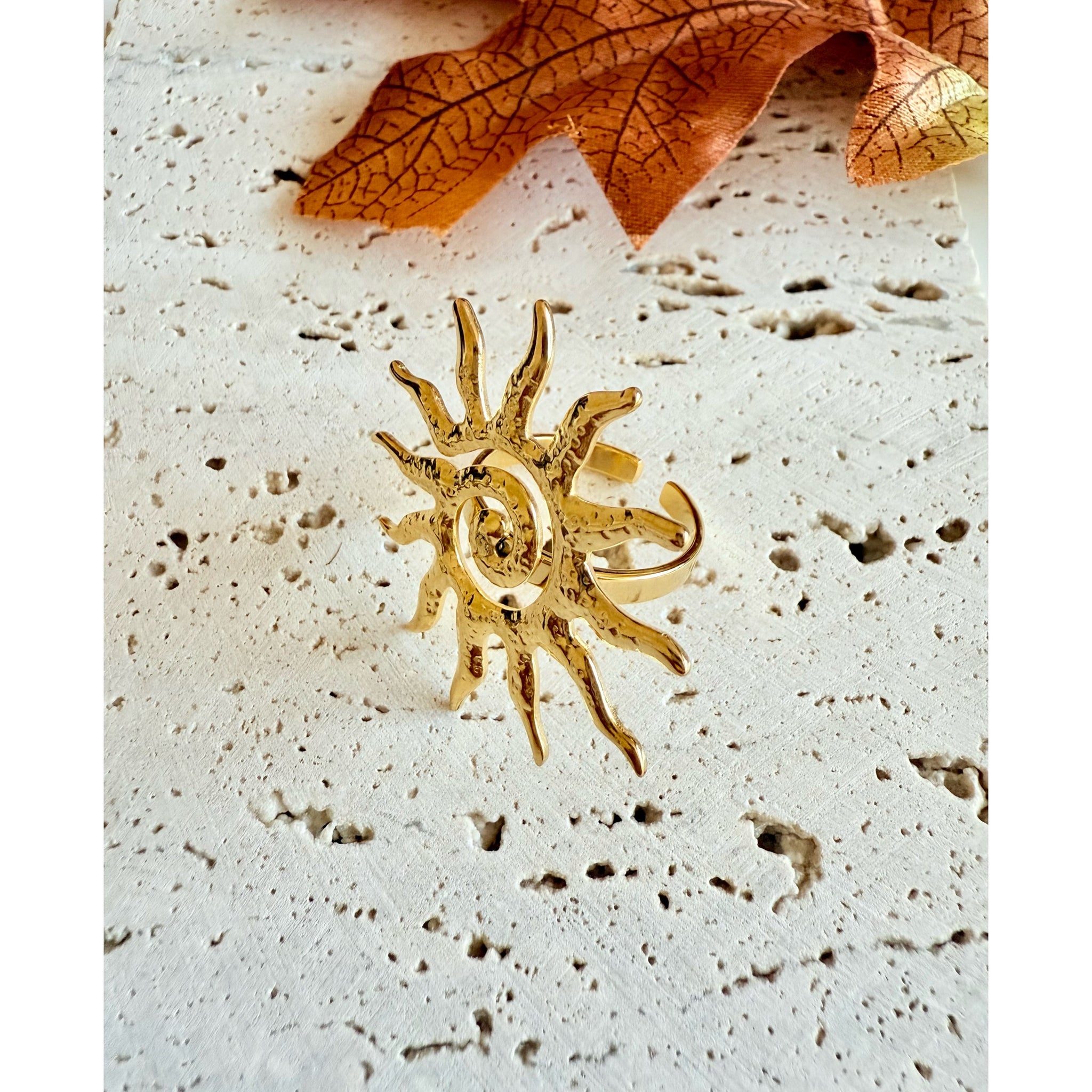 ¡Añade un toque de glamour a tu estilo con nuestro Anillo Astro Sol oro de acero inoxidable! Su diseño ajustable y maxi lo hace perfecto para cualquier ocasión. Además, su detalle de sol te conectará con la energía y el poder del universo. ¡