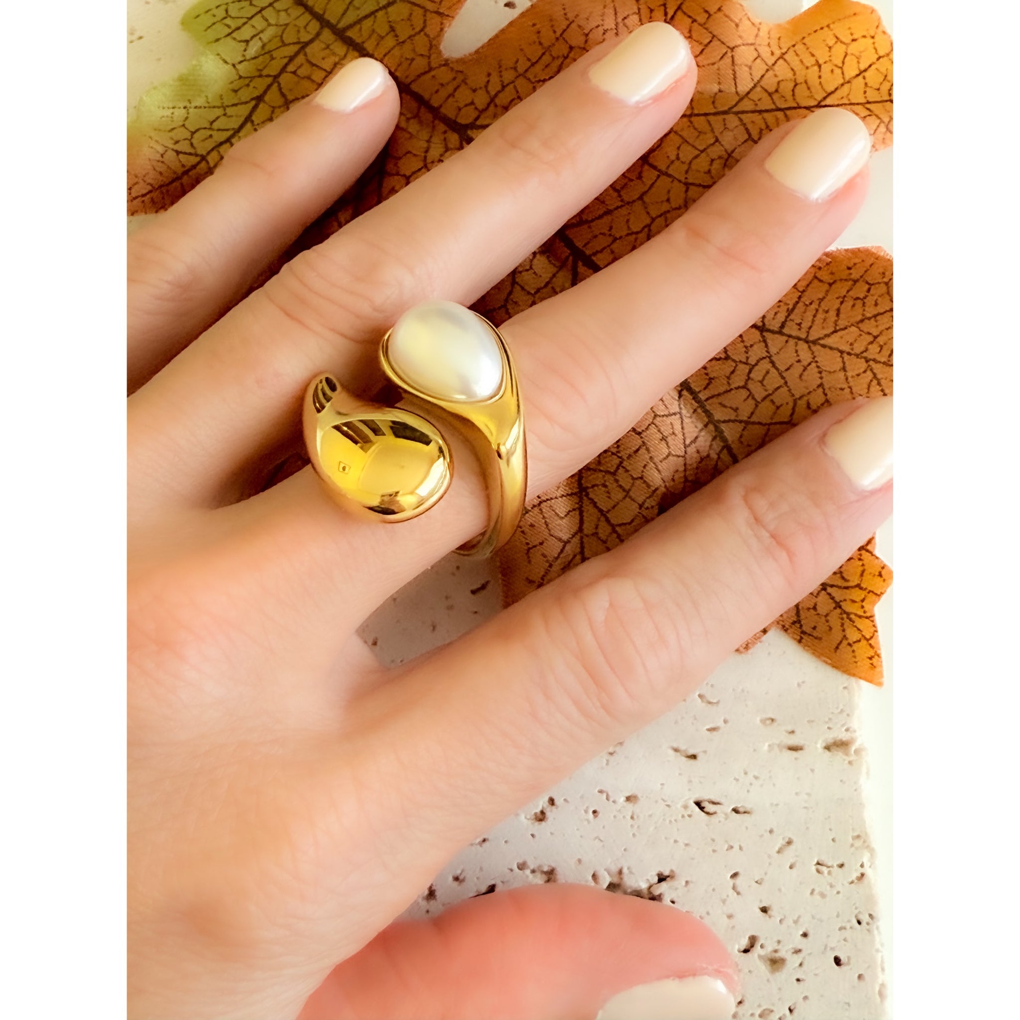 ¡Añade un toque de elegancia a tu look con este anillo de perla y acero inoxidable! Su forma de gota es única y ajustable a cualquier tamaño de dedo para mayor comodidad. ¡Haz que tus manos resalten con este toque de brillo y sofisticación!
