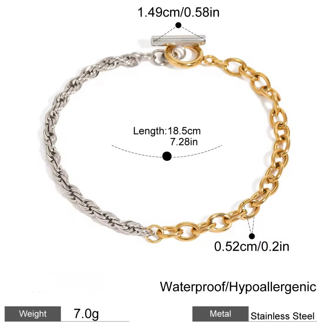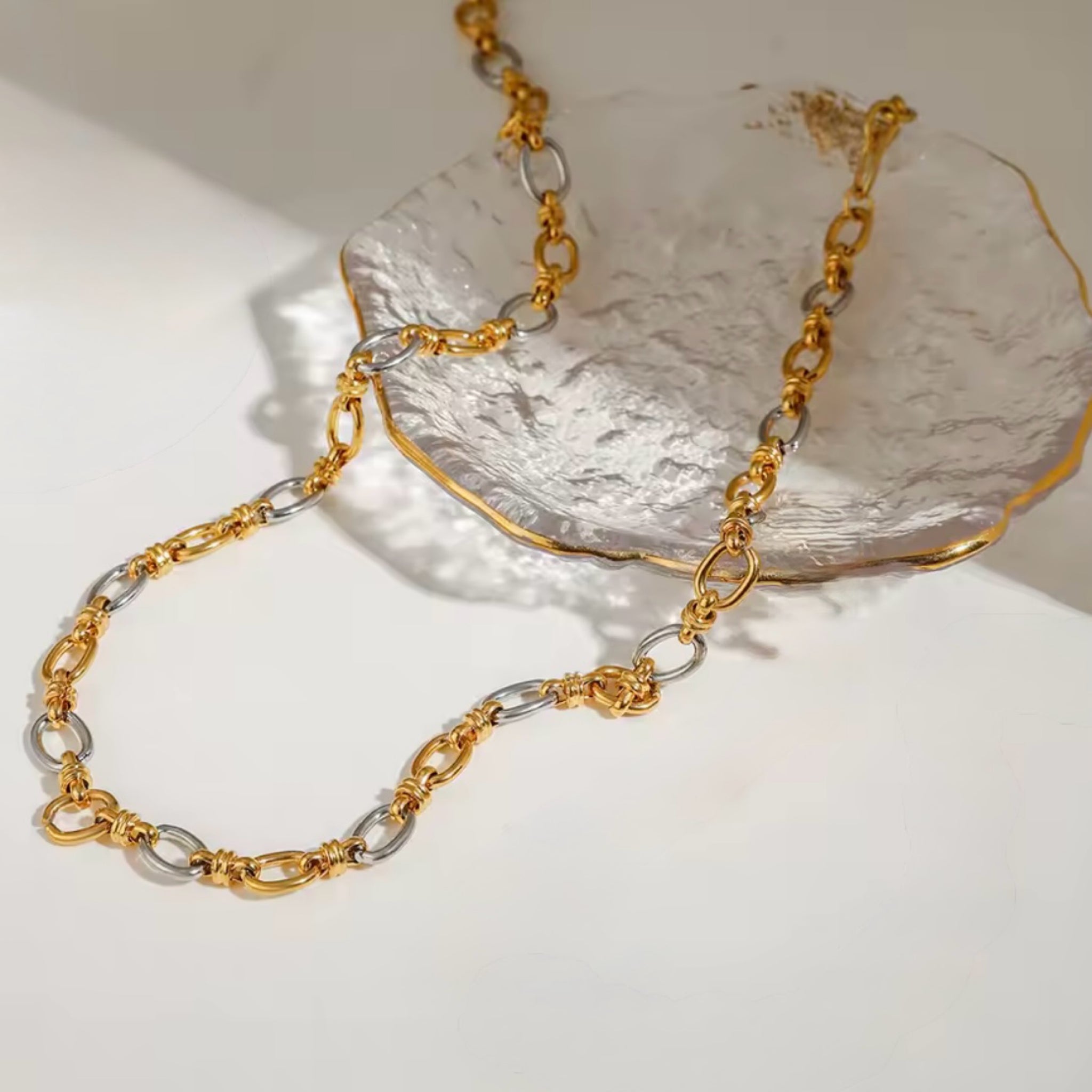 ¡Haz una declaración de moda con nuestro collar de eslabones bicolor! Hecho de acero inoxidable de la mejor calidad, es elegante y está en tendencia. ¡Añade un toque elegante y moderno a cualquier atuendo con esta cadena de eslabones! ¡No te quedes sin el must de moda de la temporada!