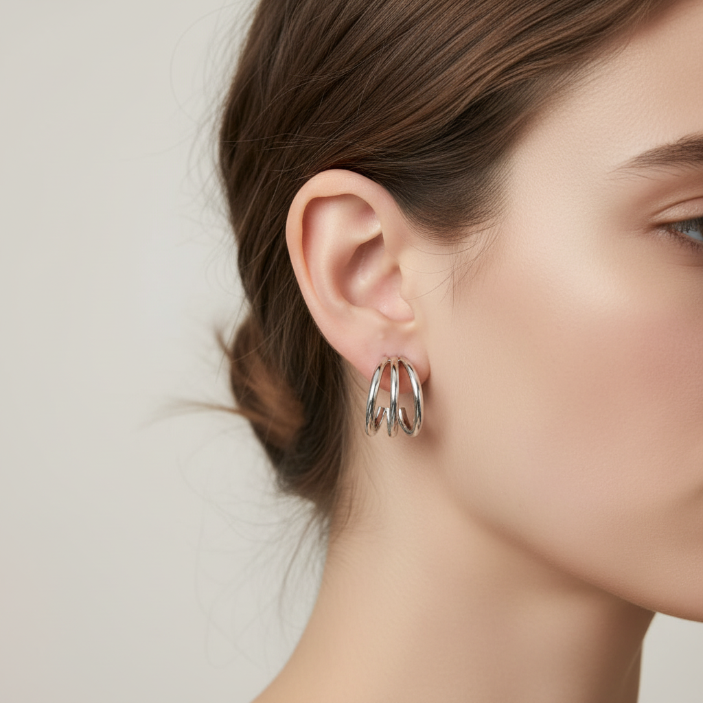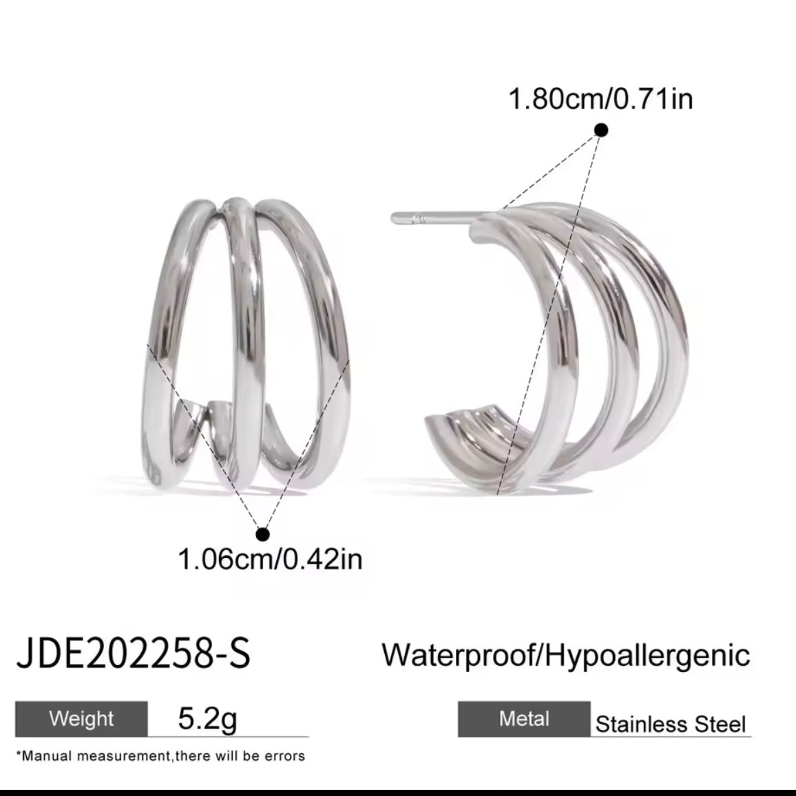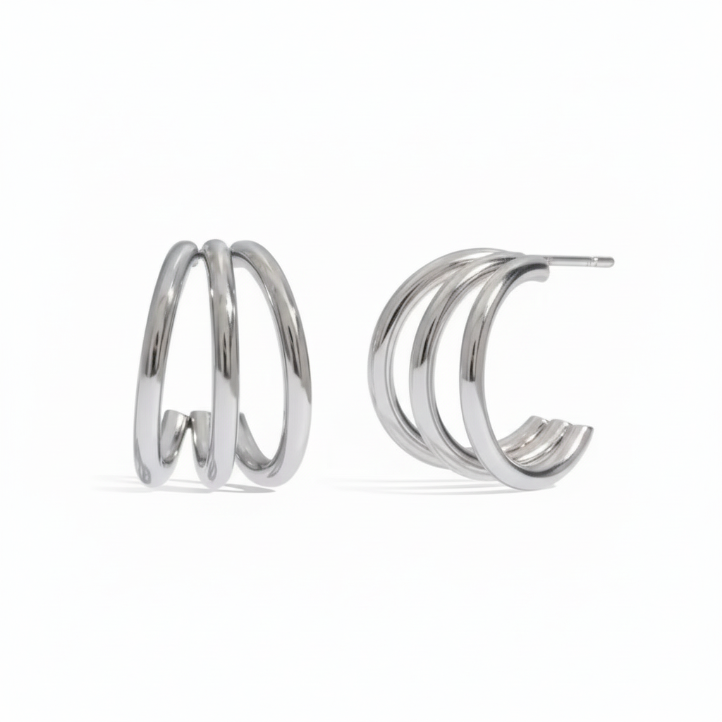 ¡Luce elegante con nuestro Pendiente Triple plata! Hecho de acero inoxidable brillante y resistente, ¡este pendiente triple es una elección atemporal y versátil para cualquier ocasión! ¡Atrapa todas las miradas con su diseño moderno y sofisticado!