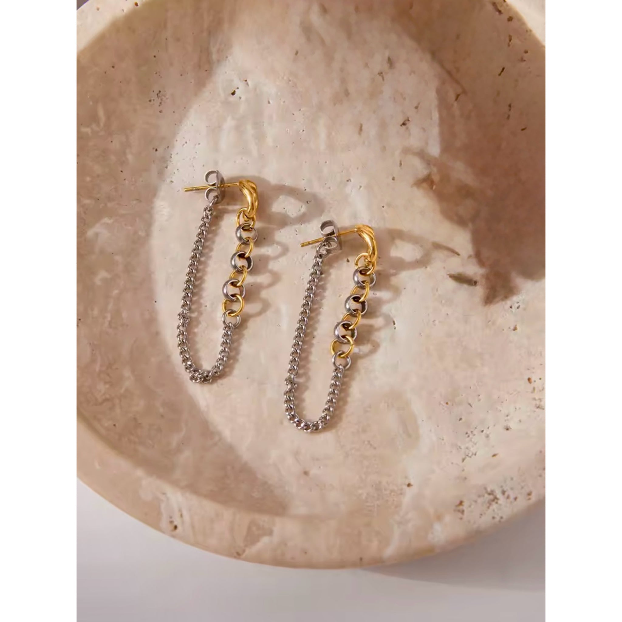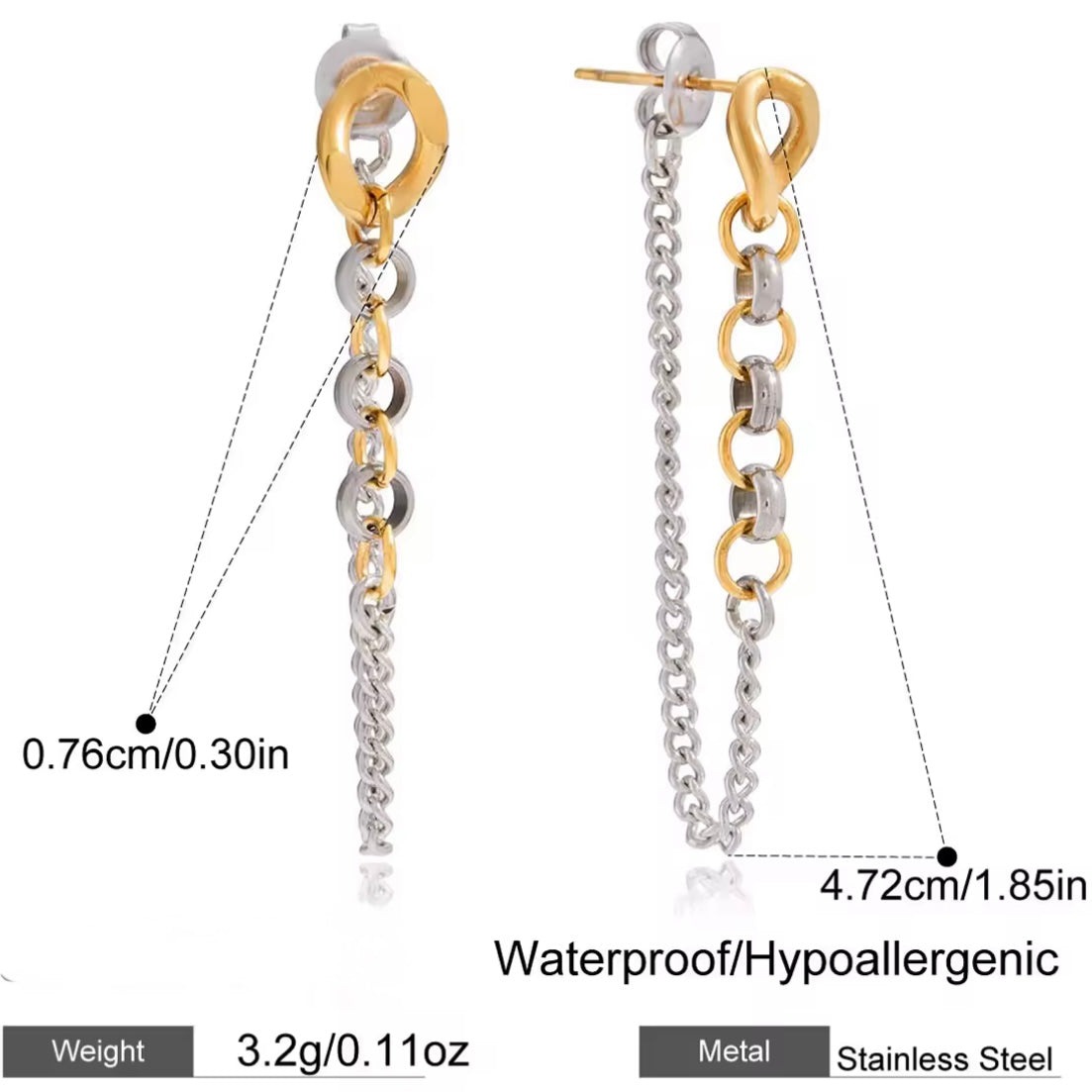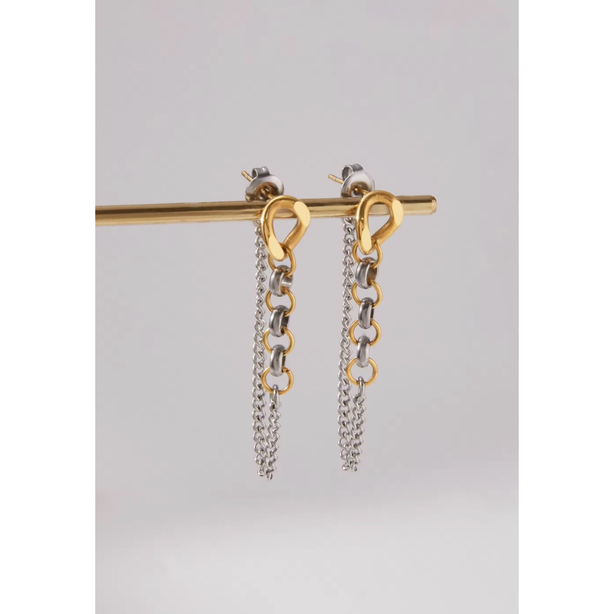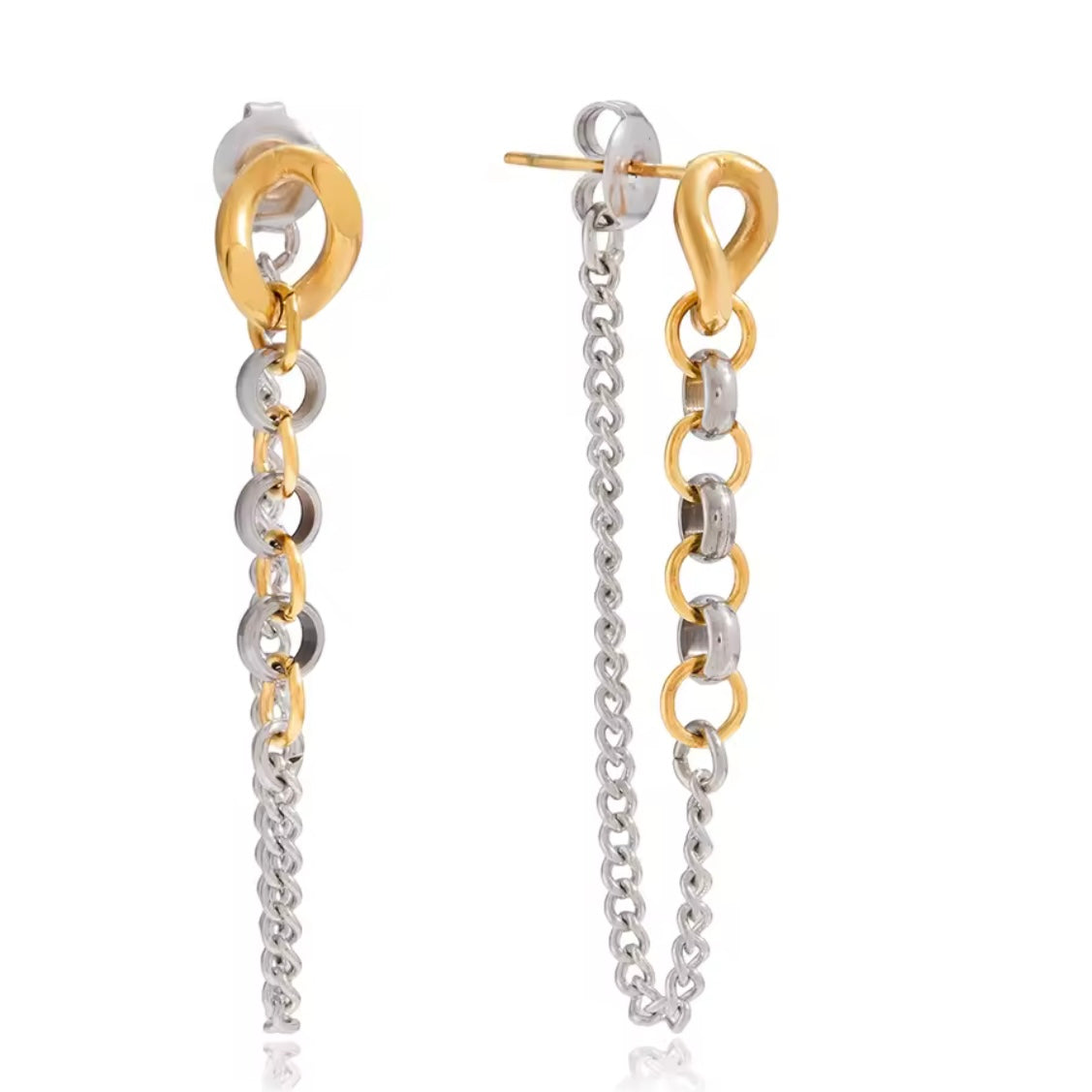 ¡Añade un toque elegante y fino a tu outfit con nuestros pendientes largos de eslabones bicolor! Hechos de acero inoxidable, su cadena larga complementa perfectamente cualquier look. ¡Hazte notar con este accesorio de estilo único!