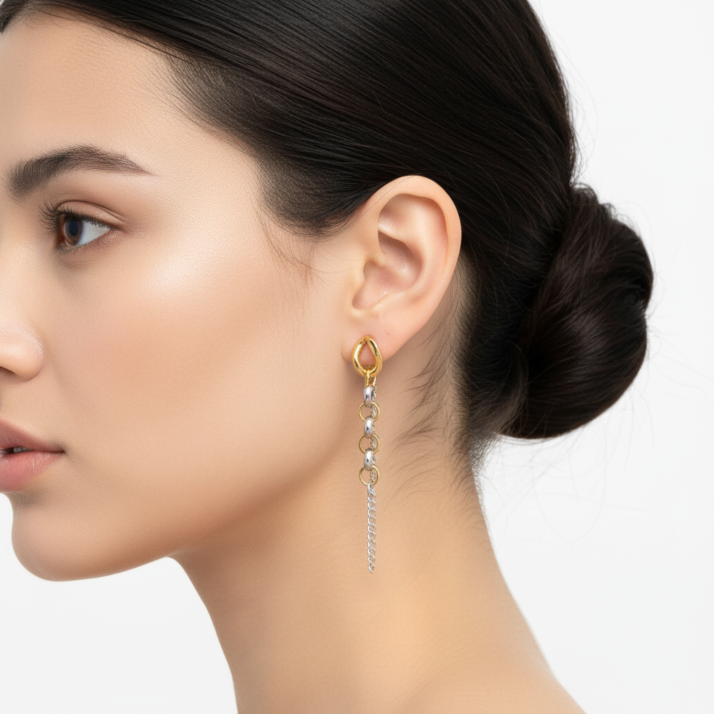 Pendiente Largo Eslabones bicolor