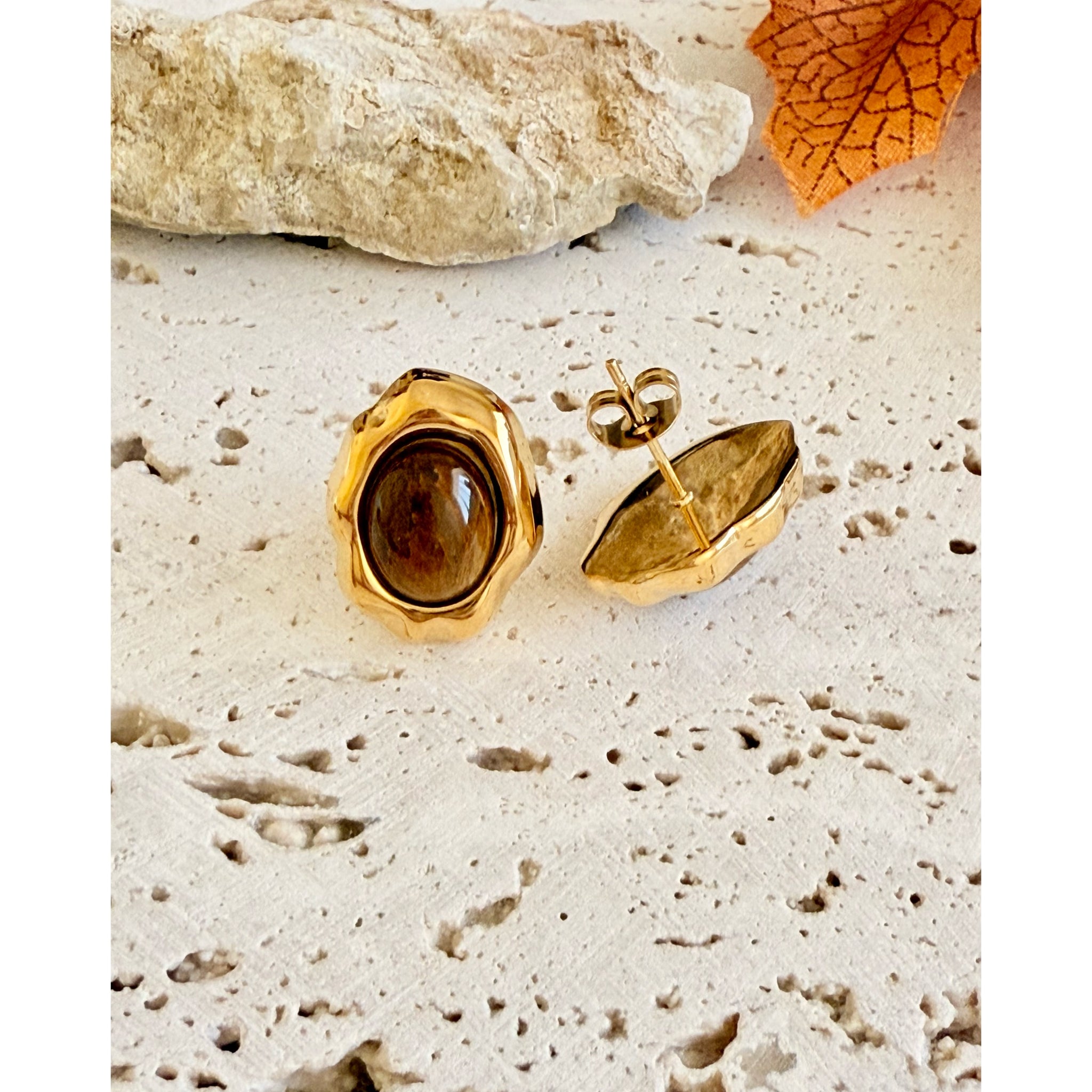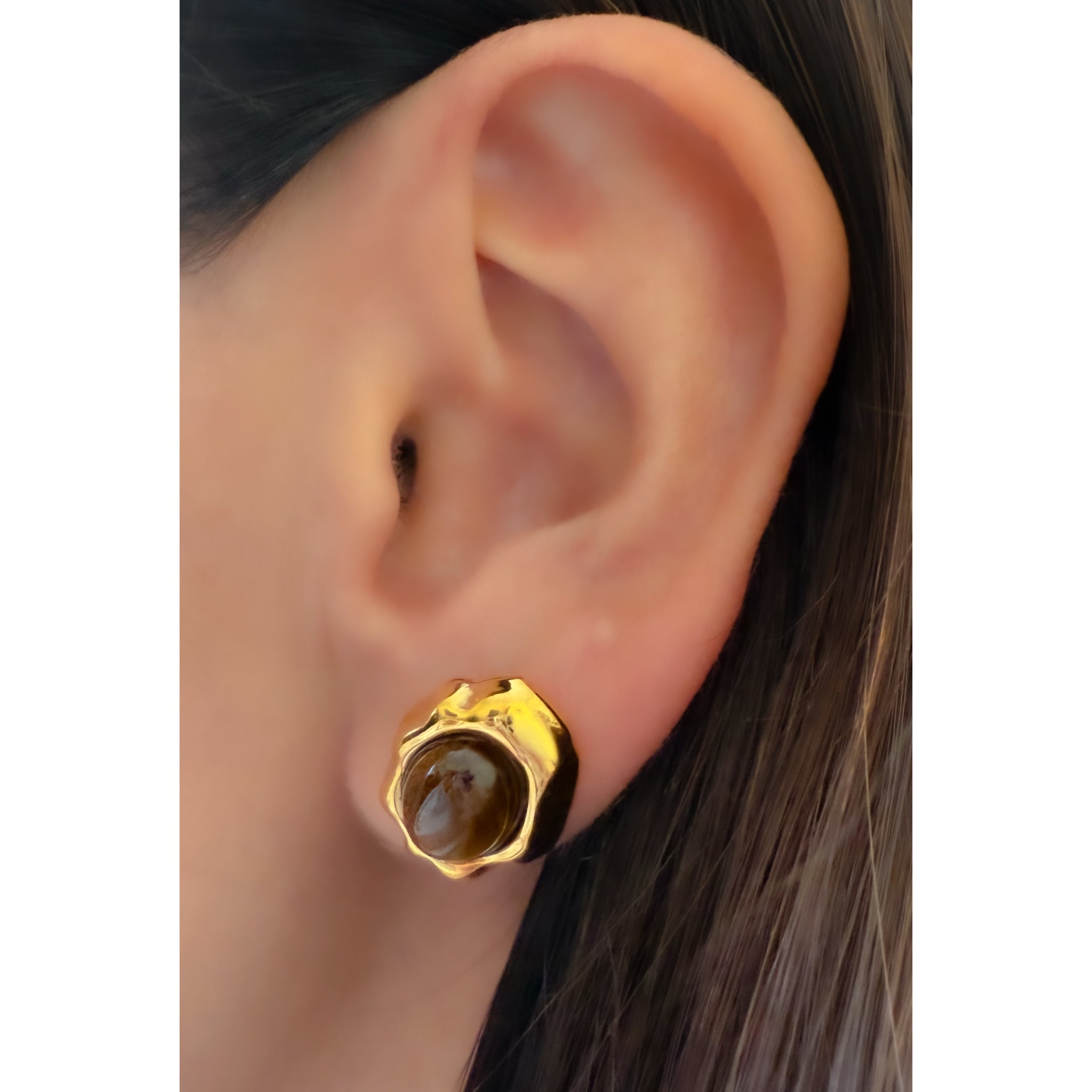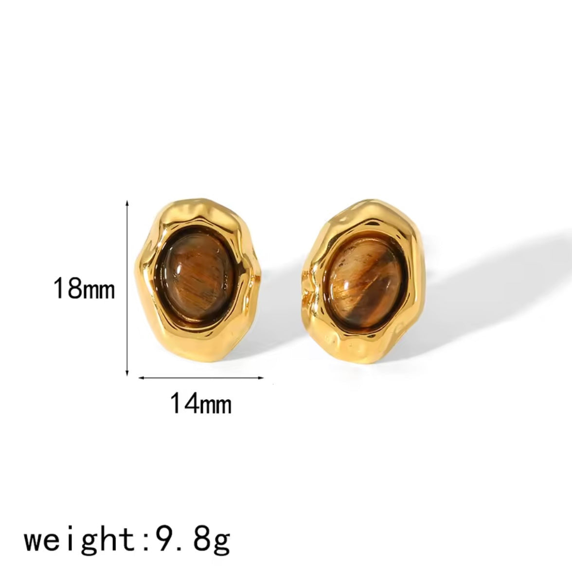 ¡Siente la elegancia y la sofisticación con nuestro pendiente de ojo de tigre y acero inoxidable dorado! Su diseño vintage te hará destacar en cualquier ocasión. ¡No esperes más para añadir un toque de lujo a tu look!