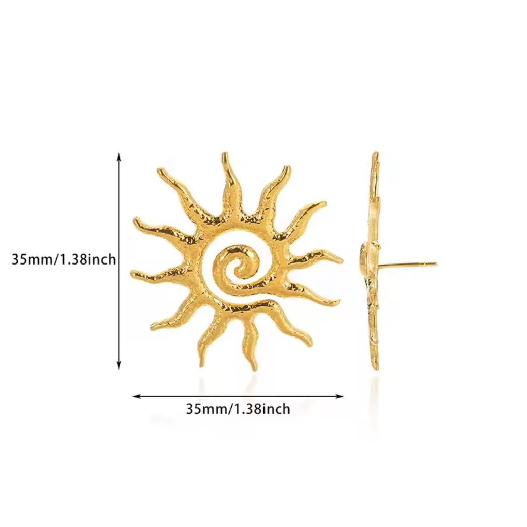 Nuestro Pendiente Astro Sol está hecho de acero inoxidable para mayor durabilidad, con un diámetro de 35 mm que lo hace perfecto para cualquier ocasión. Disfruta de su diseño único y siente el poder y la energía del astro rey a tu alrededor. ¡Ilumina tu look con este pendiente impresionante!