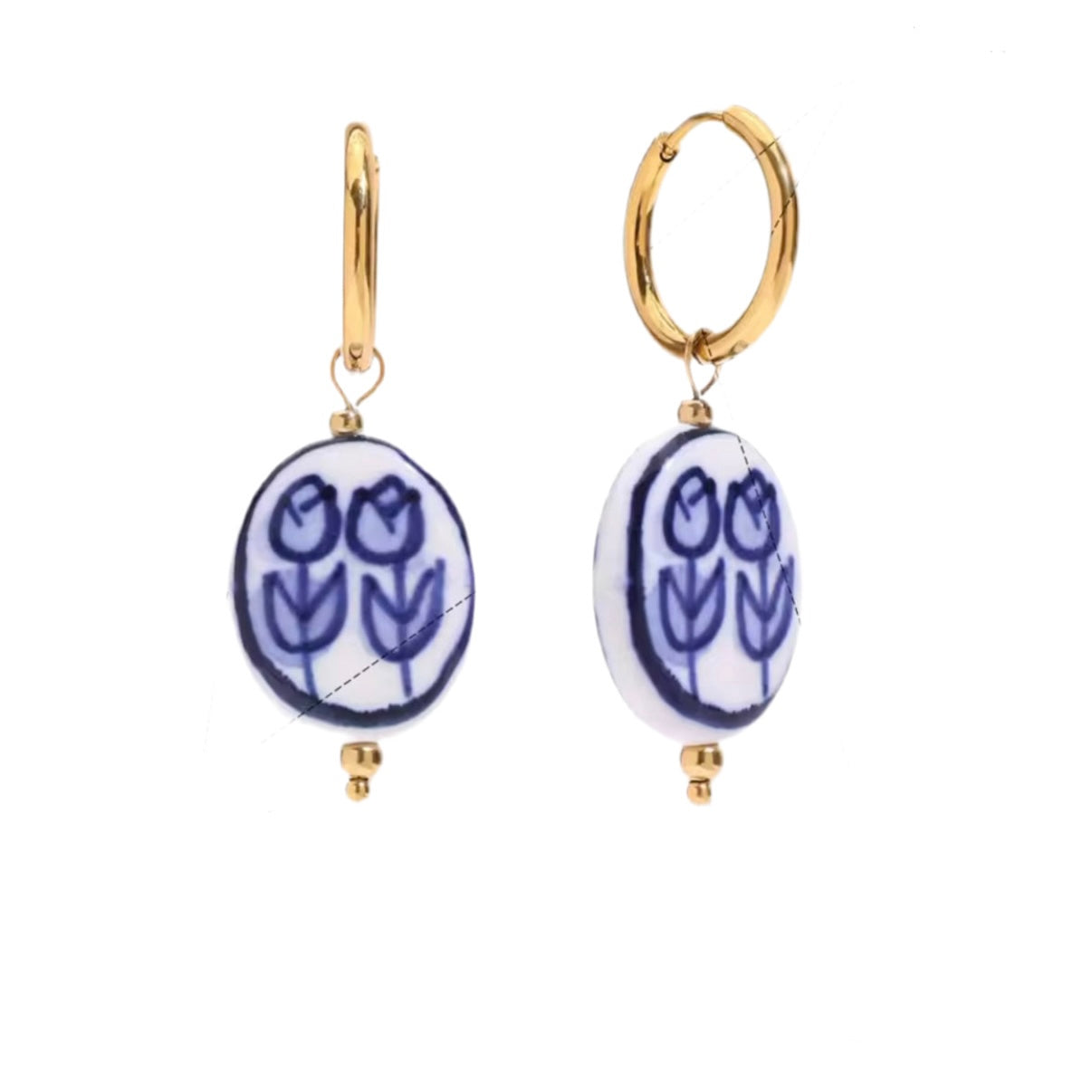 ¡Añade un toque de elegancia y estilo con los Pendientes Charms Ceramica Oro! Con forma ovalada y detalles de flores pintadas en azul, estos pendientes tienen un peso ligero. Estan hechos en acero inoxidable por lo que son perfectos para cualquier ocasión y te durarán muchos años.