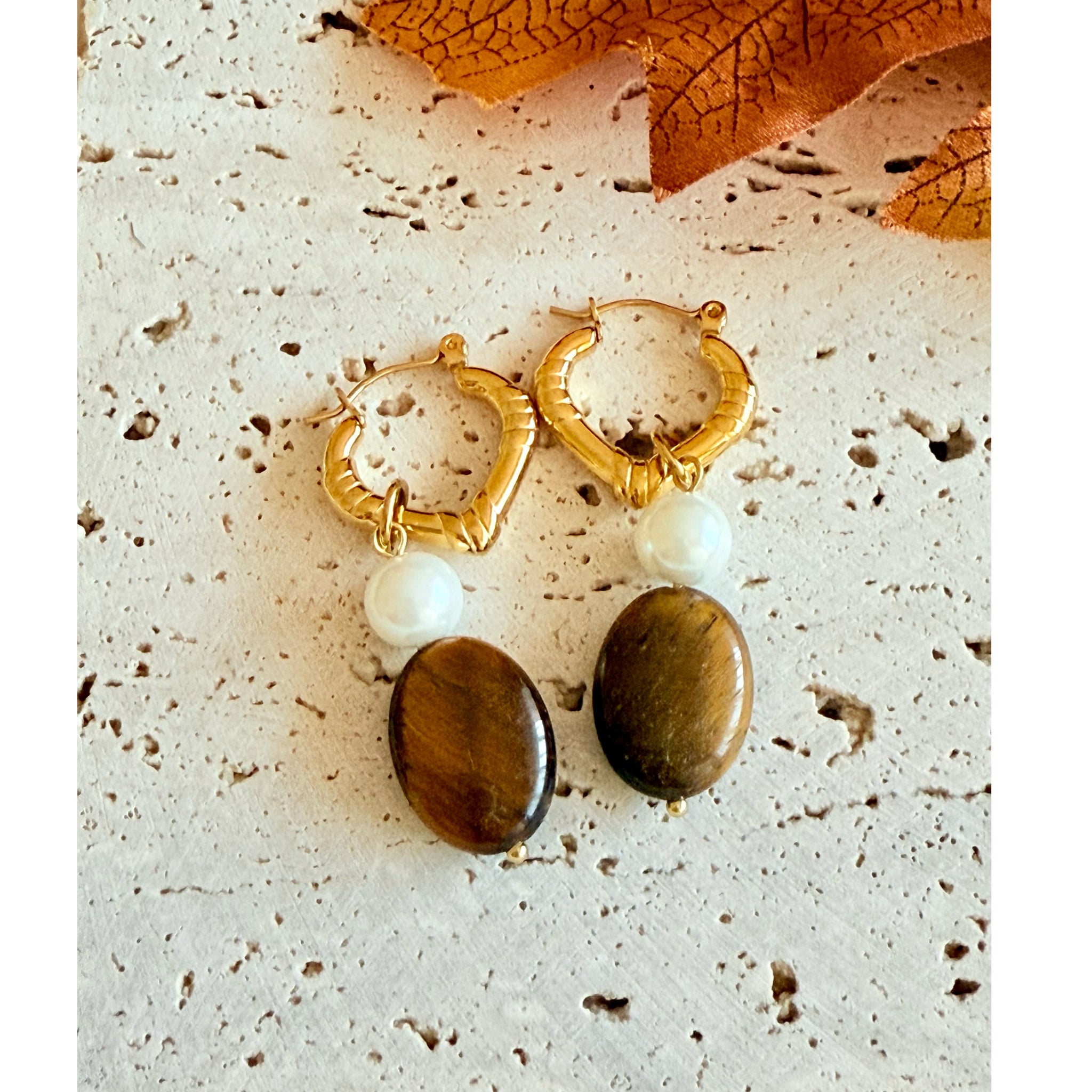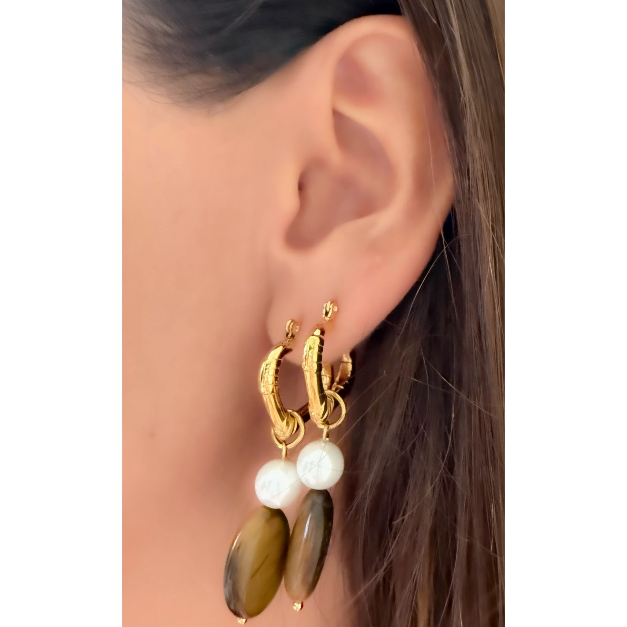 Pendientes ojo de tigre y perla oro