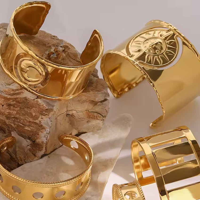 La pulsera luna con pañuelo oro combina una pulsera rigida de acero inoxidable con un elegante pasador para pañuelo. Incluye un pañuelo animal print para darle un toque de estilo a tu look. Adaptable a cualquier ocasión, te verás increíble con esta pulsera única!